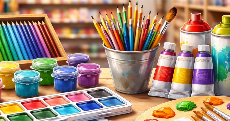 Your pencils/markers/paints + our custom-created coloring books and canvas sets
